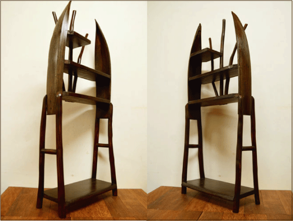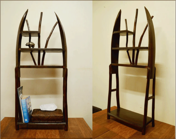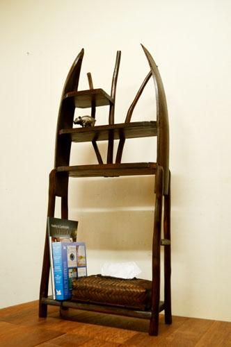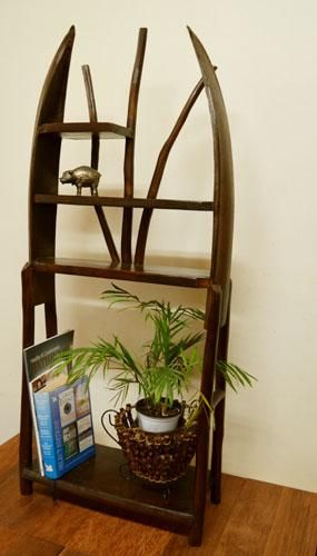 チーフ部分も脚部もラック部も天然素材の曲線をそのまま活かして製作しておりますので、とても個性的なラックです!