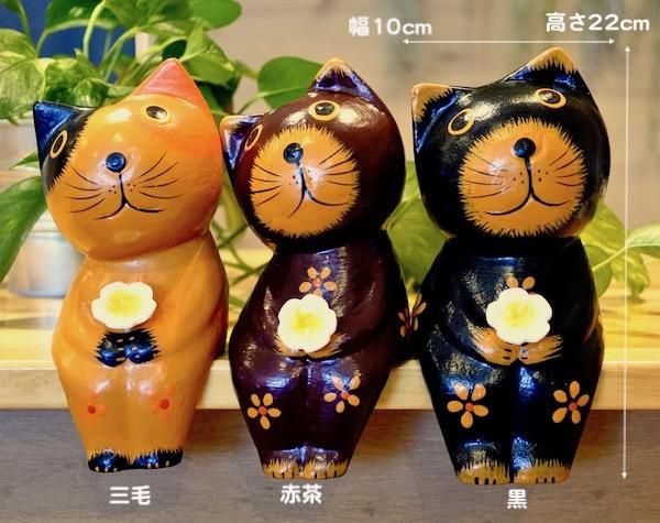 お色は三毛・赤茶・黒の3色ご用意しております。