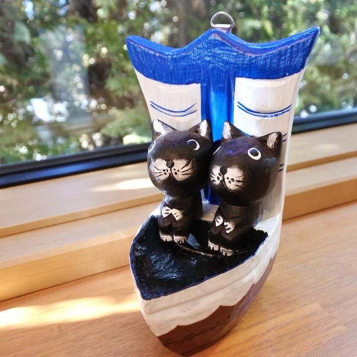 ヨットに乗った2匹の可愛いネコちゃん。