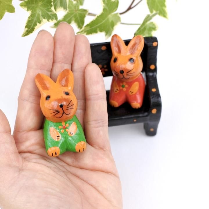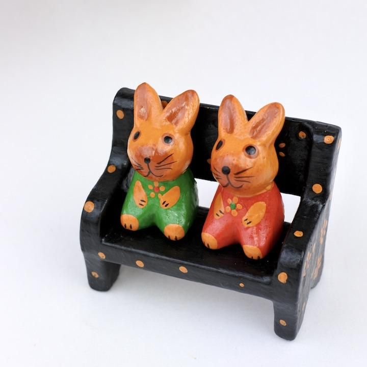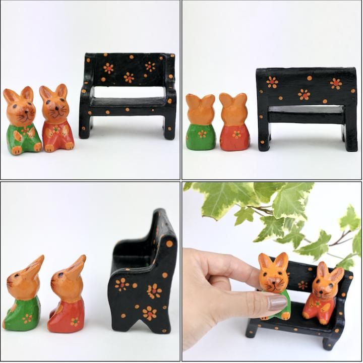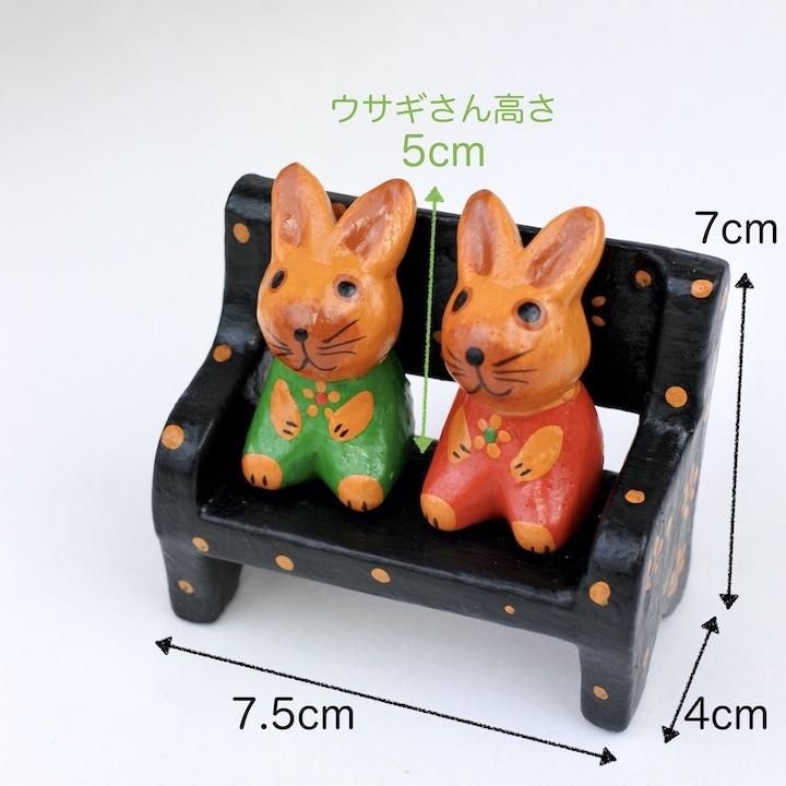 | サイズ | ベンチ幅7.5cm 奥行4cm 高さ7cm ウサギ幅2cm 奥行2cm 高さ5cm |