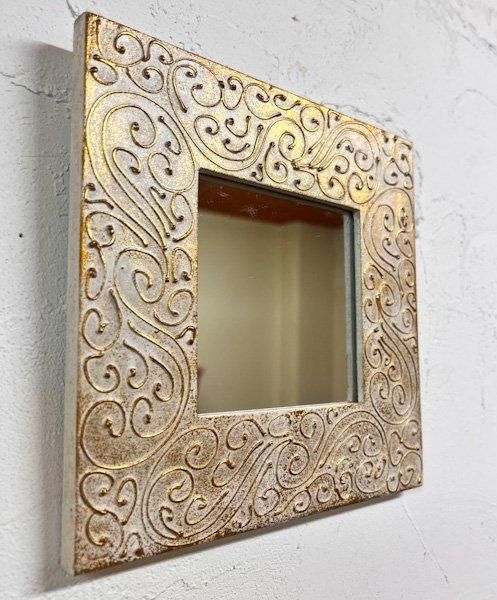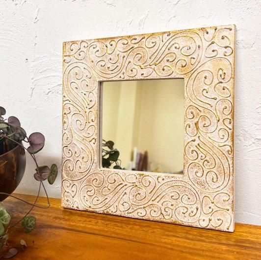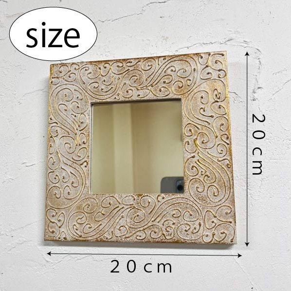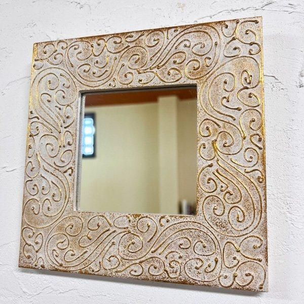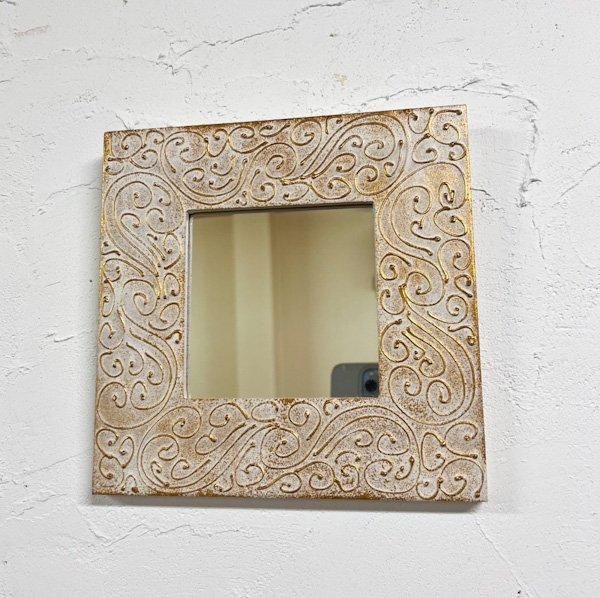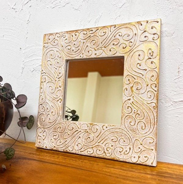 バリ島のホワイト&ゴールドマークミラー 20cm(スクエア)